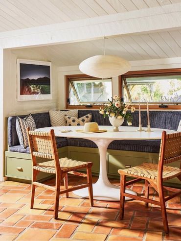 Mendocino Sleeping Cottage, Blue Heath Bathroom Guest Bedroom Breakfast Nook Architectural Digest